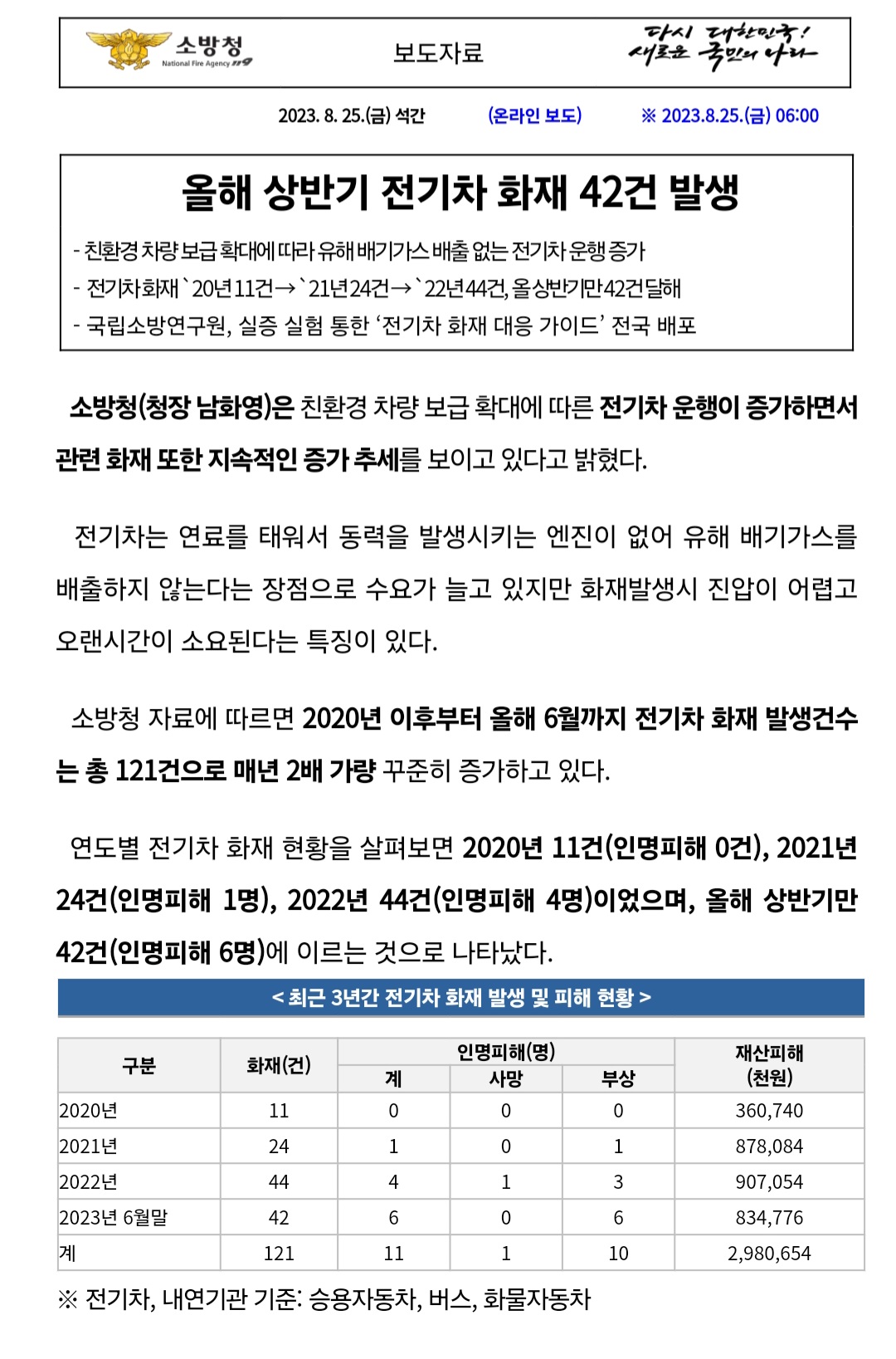 아래 소방청 자료를 주목해주길 바란다.