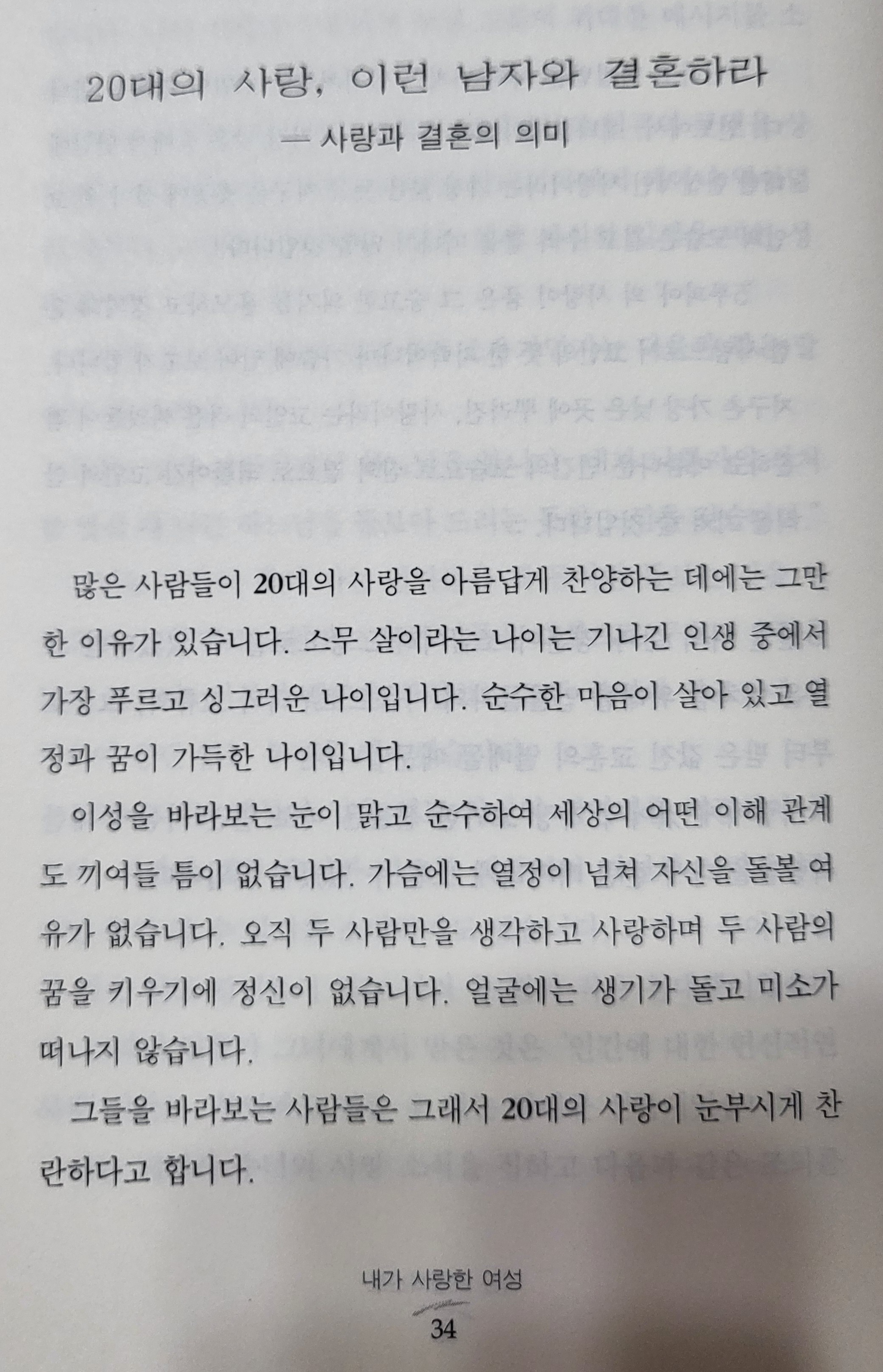 본 포스팅에선 1장의 여러 소제목들 중 [20대의 사랑, 이런 남자와 결혼하라] 부분을 자세히 다루겠다.