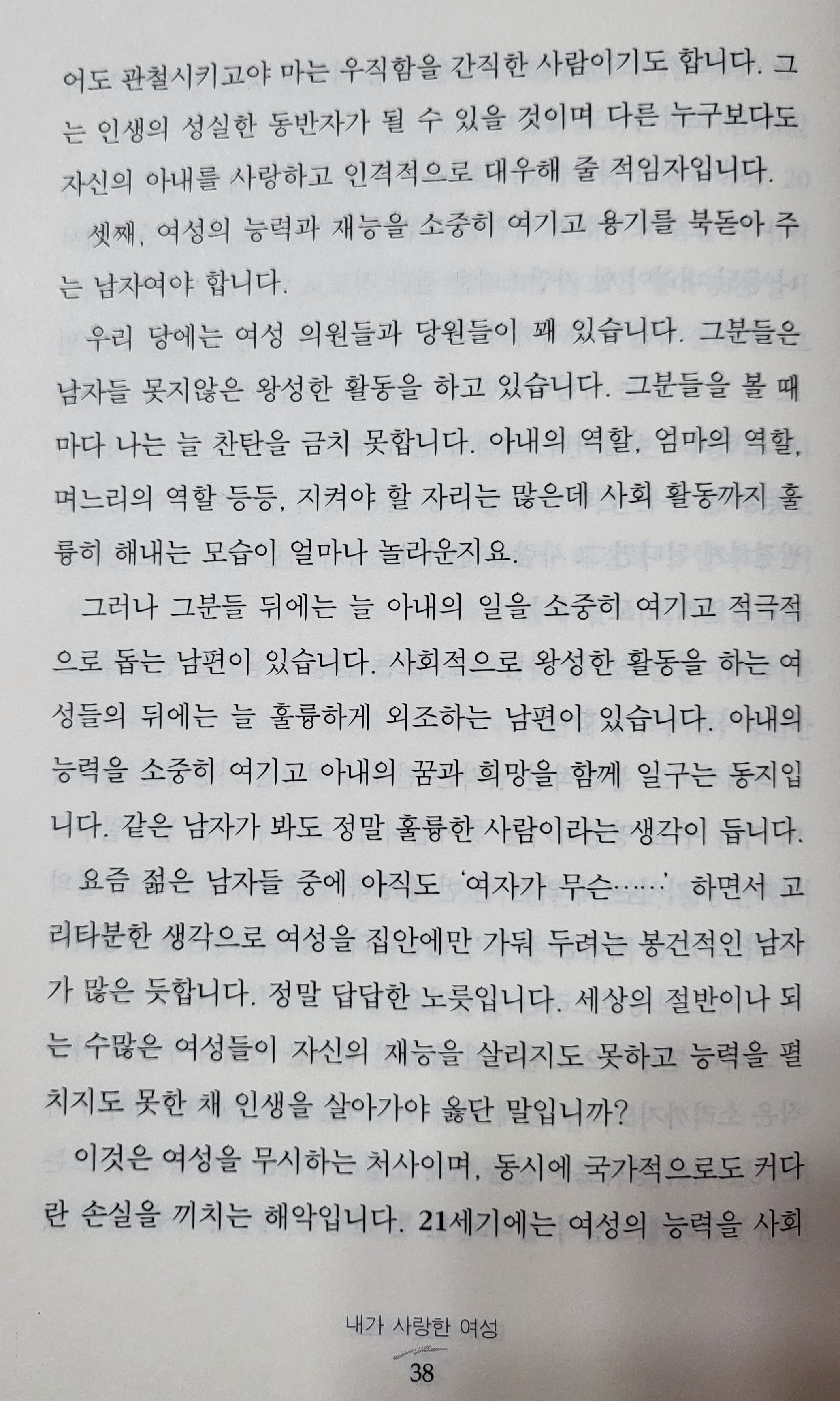셋째는, 여성의 능력과 재능을 소중히 여기고 용기를 북돋아 주는 남자여야 한다.