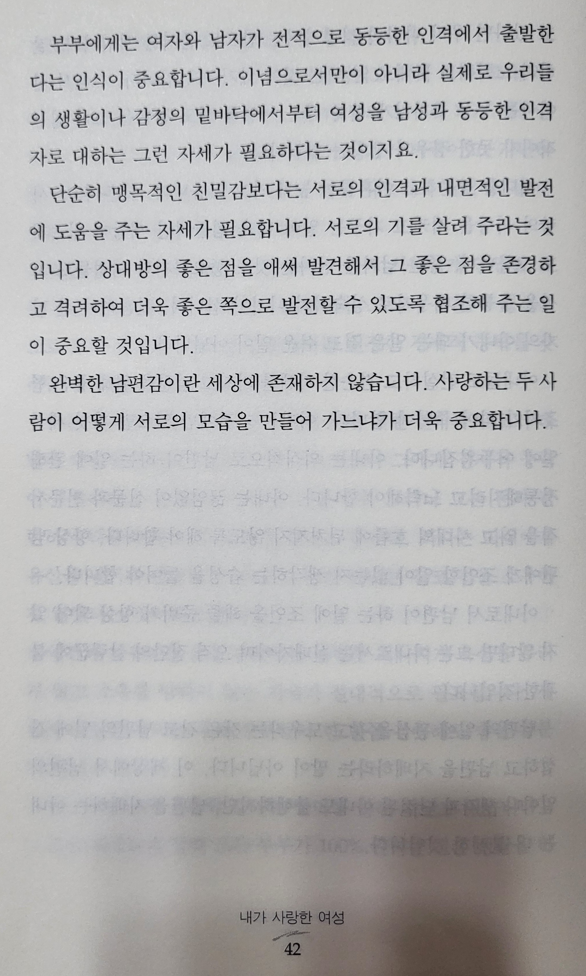 단지 김대중은 그런 현실 속에서도 남편과 아내가 서로를 동등한 인격체임을 인지, 서로의 의견을 조정하는 과정을 통해서 힘든 일을 함께 헤쳐나가야 한다고 피력하고 있다(이 책의 p.36 참고).