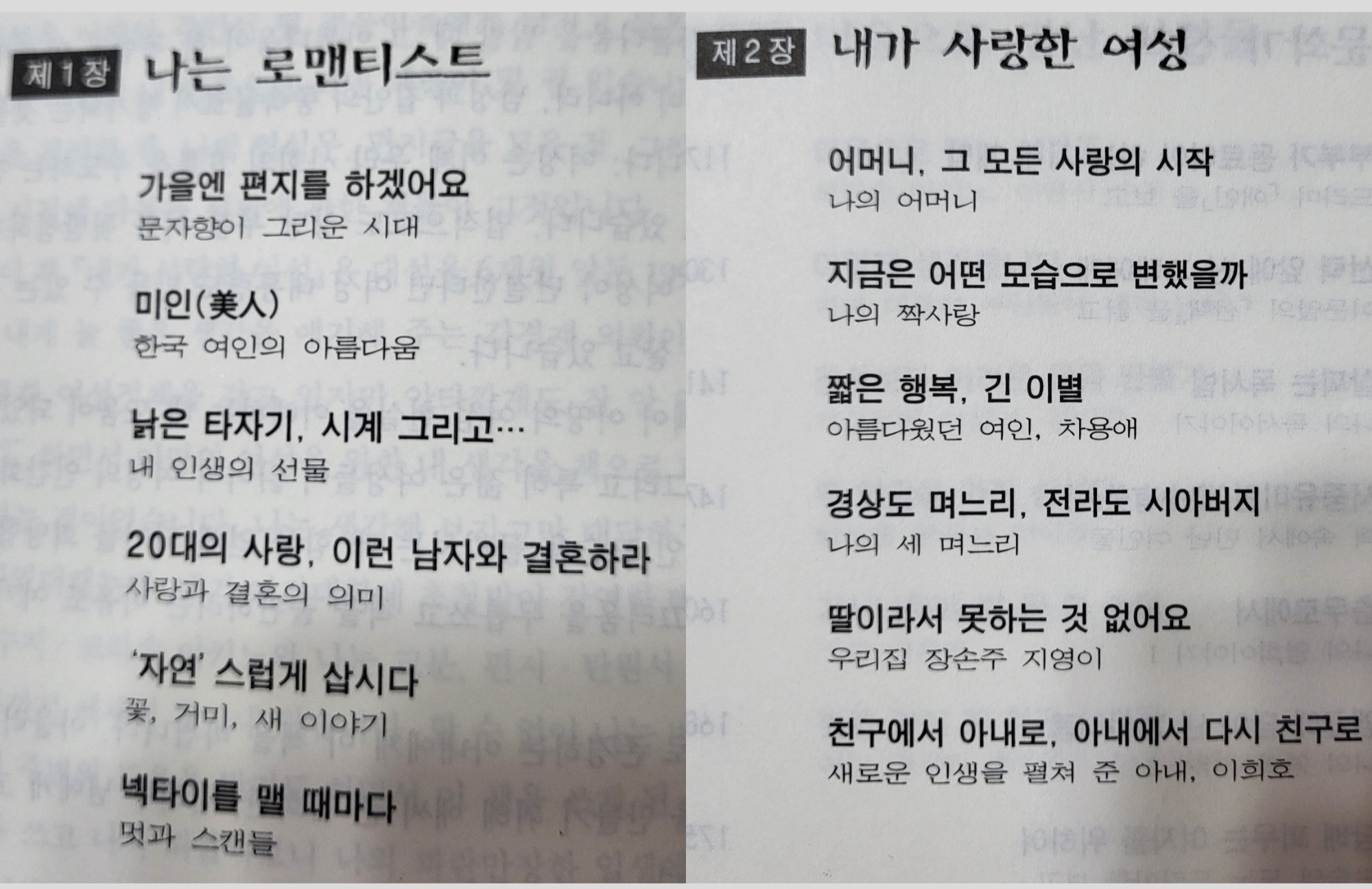 제 1장은 "나는 로맨티스트"라는 부제목으로 시작한다.(제 1장을 보다시피, 한 부제목 안에 5개의 소제목들로 나뉘어 있단걸 확인할 수 있다.)